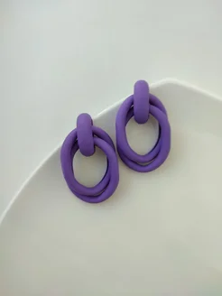 Серьги металлические два овала, фиолетовый