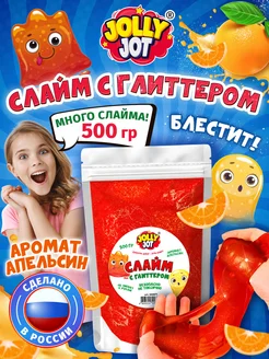 Слайм для детей 500г, с блестками и ароматом апельсина