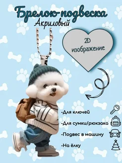 Брелок акриловый Брелок собака "Бишон с рюкзачком"
