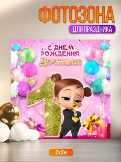 Баннер для фотозоны "С Днем Рождения 1 годик" 2х2