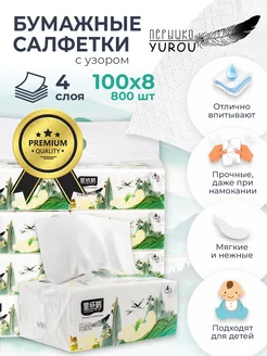 Салфетки бумажные 4 слоя 8 уп 800 шт