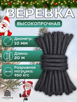 Веревка туристическая 10 мм 20 м черная. Шнур плетеный пп