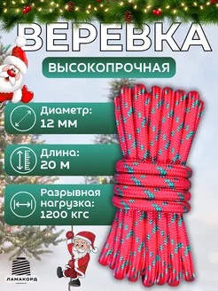 Веревка 12 мм 20 м красная. Шнур плетеный пп