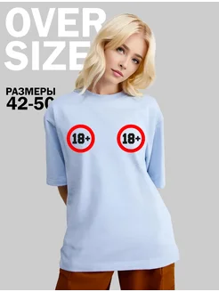 Футболка оверсайз хлопковая однотонная с принтом 18+