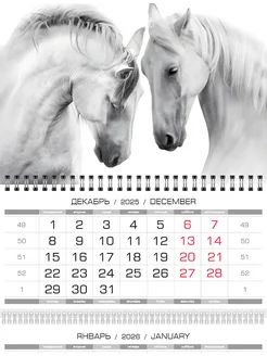 Календарь настенный трехблочный "Лошади белые" 2026г