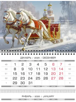 Календарь настенный трехблочный "Лошади Русская зима" 2026г