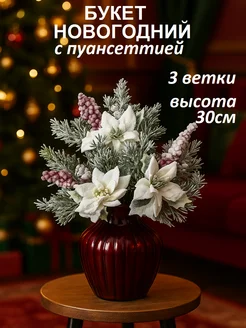 Новогодний букет с заснеженными ягодами и пуансеттией