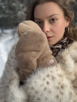 Варежки женские зимние коричневые