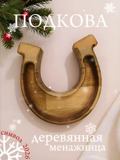 Менажница деревянная новогодняя Подкова на удачу символ 2026