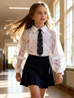 Блузка школьная праздничная рубашка летняя нарядная оверсайз