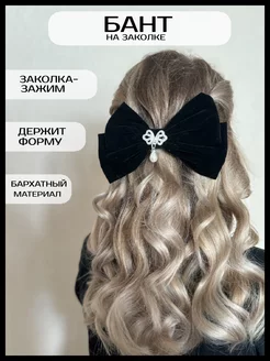 Большой бархатный бант для волос с заколкой-зажим
