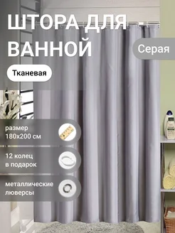 Штора для ванной водоотталкивающая 180х200 серая