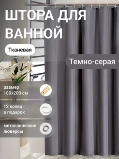 Штора для ванной водоотталкивающая 180х200 темно-серая