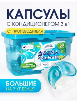 Капсулы для стирки белья с кондиционером 3 в 1, 30 штук