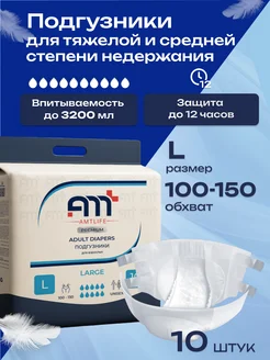Подгузники для взрослых L (3) для лежачих больных, 10 шт