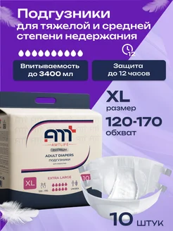 Подгузники для взрослых XL (4) для лежачих больных, 10 шт