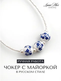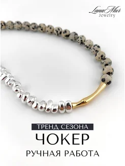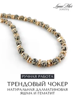 Чокер на шею из натуральной далматиновой яшмы и гематита