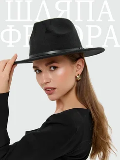 Женская черная фетровая шляпа федора с полями 7 см осенняя