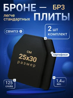 Бронеплиты 2 штуки для бронежилета бронепластины Бр3 СВМПЭ
