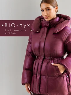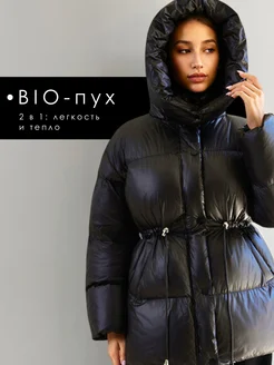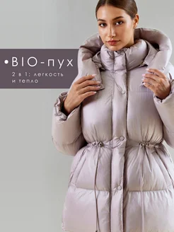 Пуховик зимний длинный с поясом