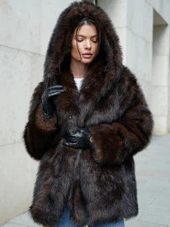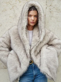 Шуба искусственная из экомеха песца с капюшоном