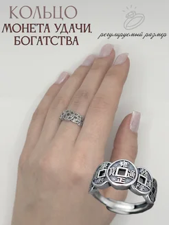 Кольцо - оберег "Монета удачи, богатства" регулируемое