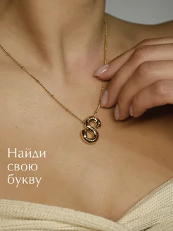 Подвеска буква S именная с цепочкой бижутерия буква S