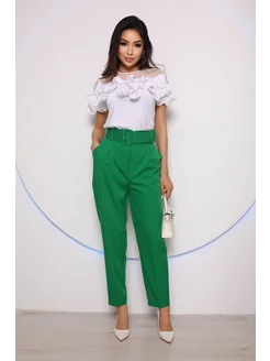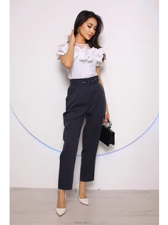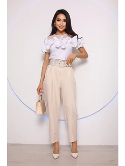 Брюки бананы зауженные укороченные с ремнем