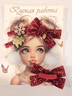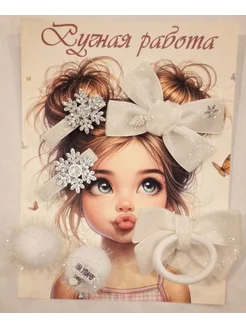 Набор бантиков, заколок, клипс для ушей для снежинки
