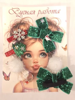 Набор Снегурочке из клипс,бантиков,заколок и колечка зеленый