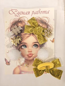 Набор Снегурочке из клипс,бантиков,заколок и колечка золото