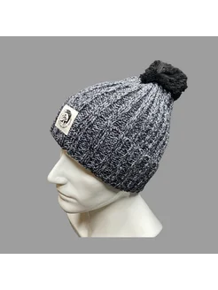 Шапка вязаная с отворотом, с помпоном