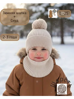 Шапка зимняя детская с помпоном и снуд