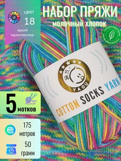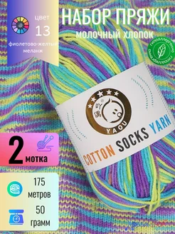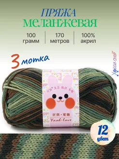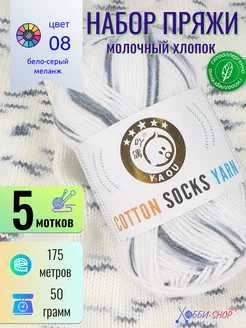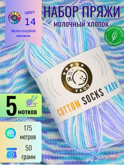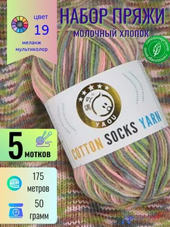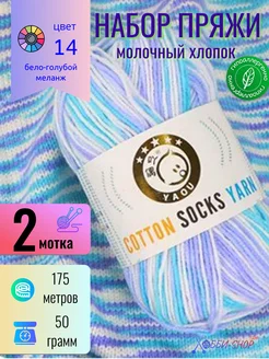 Меланжевая пряжа для вязания, молочный хлопок, 175м 50г