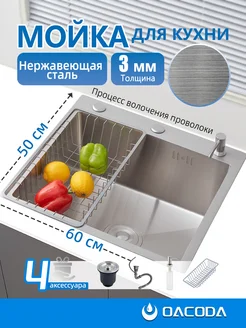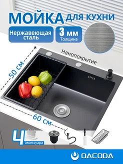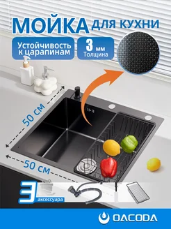 Мойка для кухни нержавеющая врезная 50*50, черный