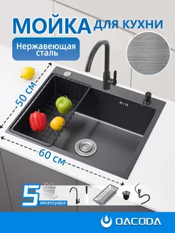 Мойки для кухни 60*50, черная, с корзиной для слива