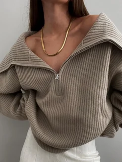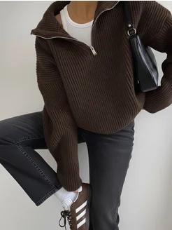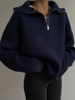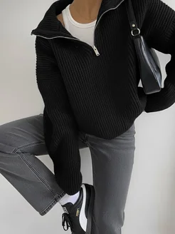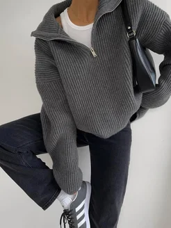Зимний свитер полузамок оверсайз y2k поло на молнии