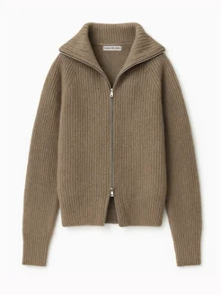 Удлиненный теплый вязаный кардиган на молнии оверсайз осень