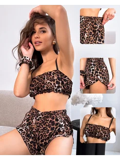 Пижама с шортами леопардовая