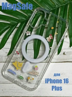Чехол MagSafe на iPhone 16 Plus прозрачный с принтом
