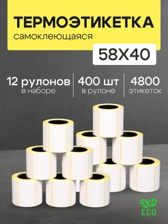 Термоэтикетка 58х40 мм 12 рулонов по 400 шт