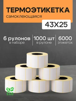 Термоэтикетка 43*25 6 рулонов по 1000 шт
