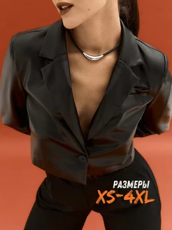 Пиджак кожаный укороченный оверсайз жакет блейзер