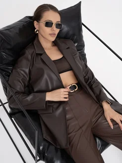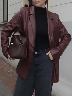 Пиджак кожаный оверсайз удлиненный жакет классический