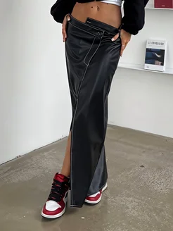 Юбка кожаная миди с разрезом длинная макси Y2K
