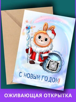 Оживающая новогодняя открытка Лабубу с QR кодом