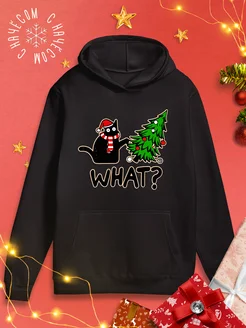Новогоднее Худи Кот Черный Санта Елка Мем Праздник Уют