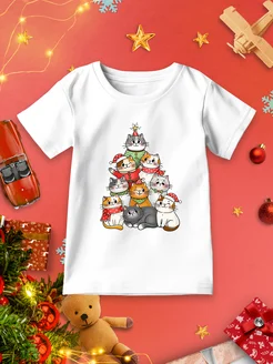 Детская футболка Котята Елка Новый Год Рождество Принт