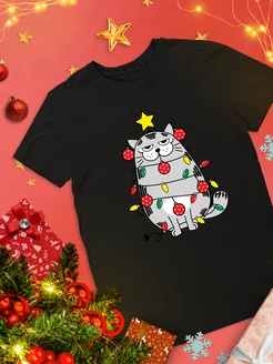 Футболка Котики Новый Год Рождество Праздничный Оверсайз
