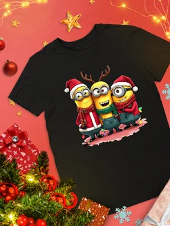 Футболка Новогодняя Желтые Монстры Санта Олень Гадкий Я